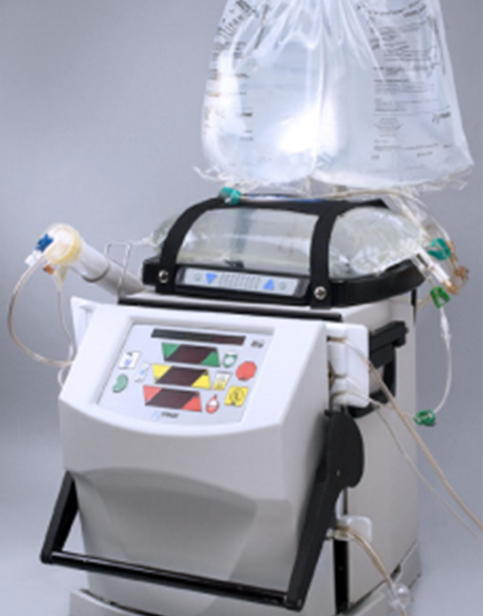 The NxStage machine only requires about 30 liters of pure water for each session. Obviously the amount of water required is dependent on session prescription. NxStage either uses dialysate bags ready to use, or can prepare a batch of dialysate with PureFlowSL. It prepares up to 60 liters of ultra-pure dialysate which is fully utilized. With a modern deionisation technology, incoming water is converted into ultrapure product water on a 1:1 basis, so that one liter of product water is prepared with one liter of tap water. The PureFlow SL system prepares batches of 40, 50 or 60 liters of dialysate which, according to the patient’s prescription, can be used in up to three treatments.