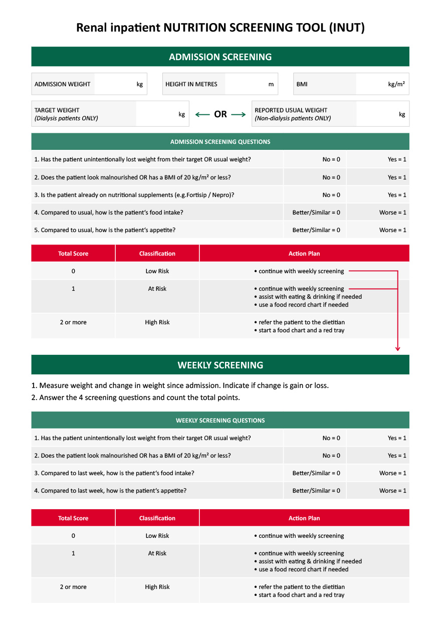 Download Renal inpatient NUTRITION SCREENING TOOL (INUT) in PDF here.
